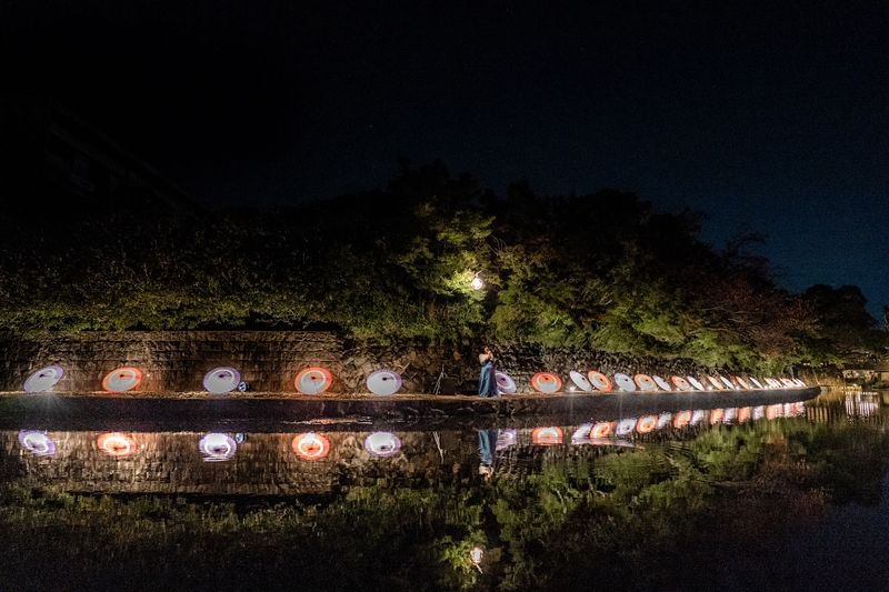 八幡掘り祭り、なかなか綺麗でした。 お堀の細い道で歌われてたのが、なんとも面白い演出で印象的でした。